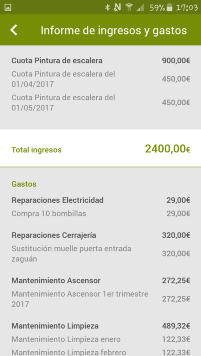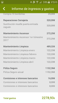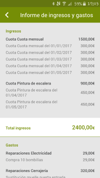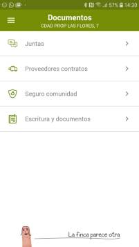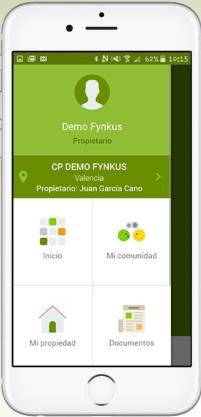 Éstas son algunas de las pantallas que usted podrá ver en su teléfono móvil con toda la información de su comunidad de propietarios .